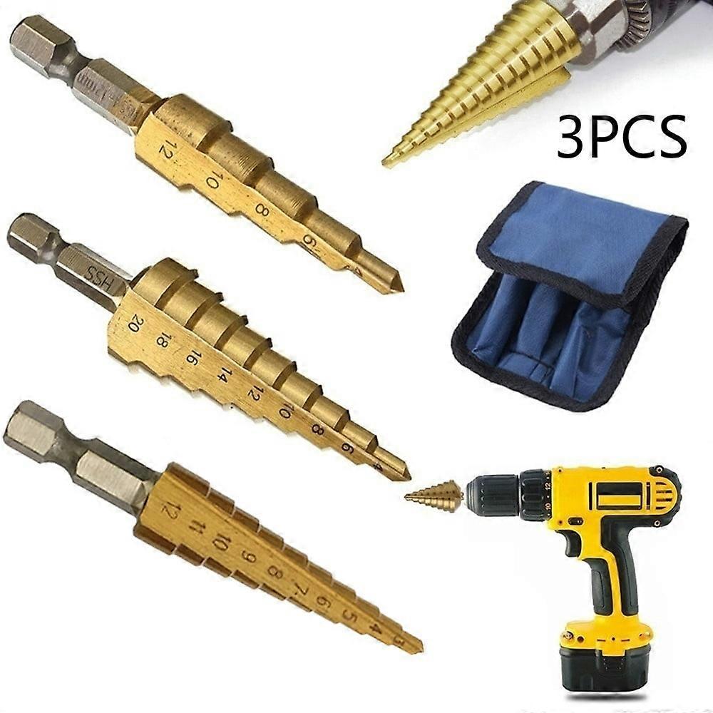Willstar 3X HSS Step Cone Drill Titanium Coated Hole Cutter Bit Set 3-12 4-12/20 mm Pouch