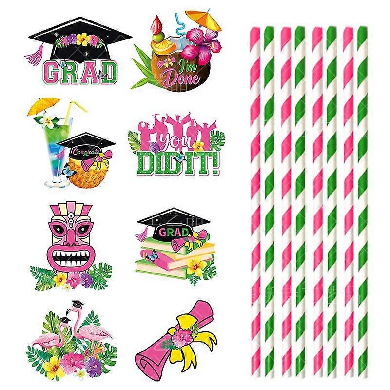Hawaiian Graduation Ceremony Decoration Straw Inserts Summer Graduation Party Dessert Decoration Straw Inserts 8 pieces/pack, Y-00374