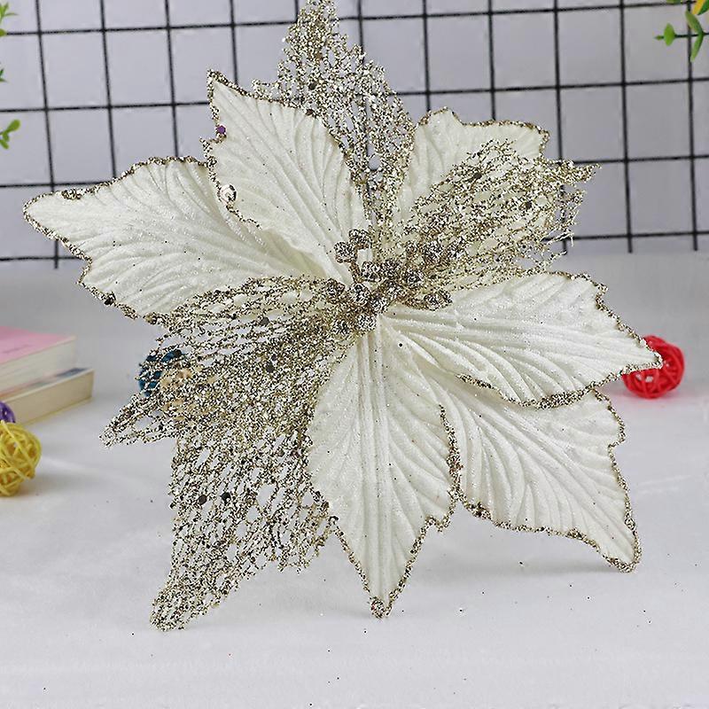 Christmas gold powder decorative flower head simulation flower double layer hollow holiday wreath accessories Christmas decorations 2
