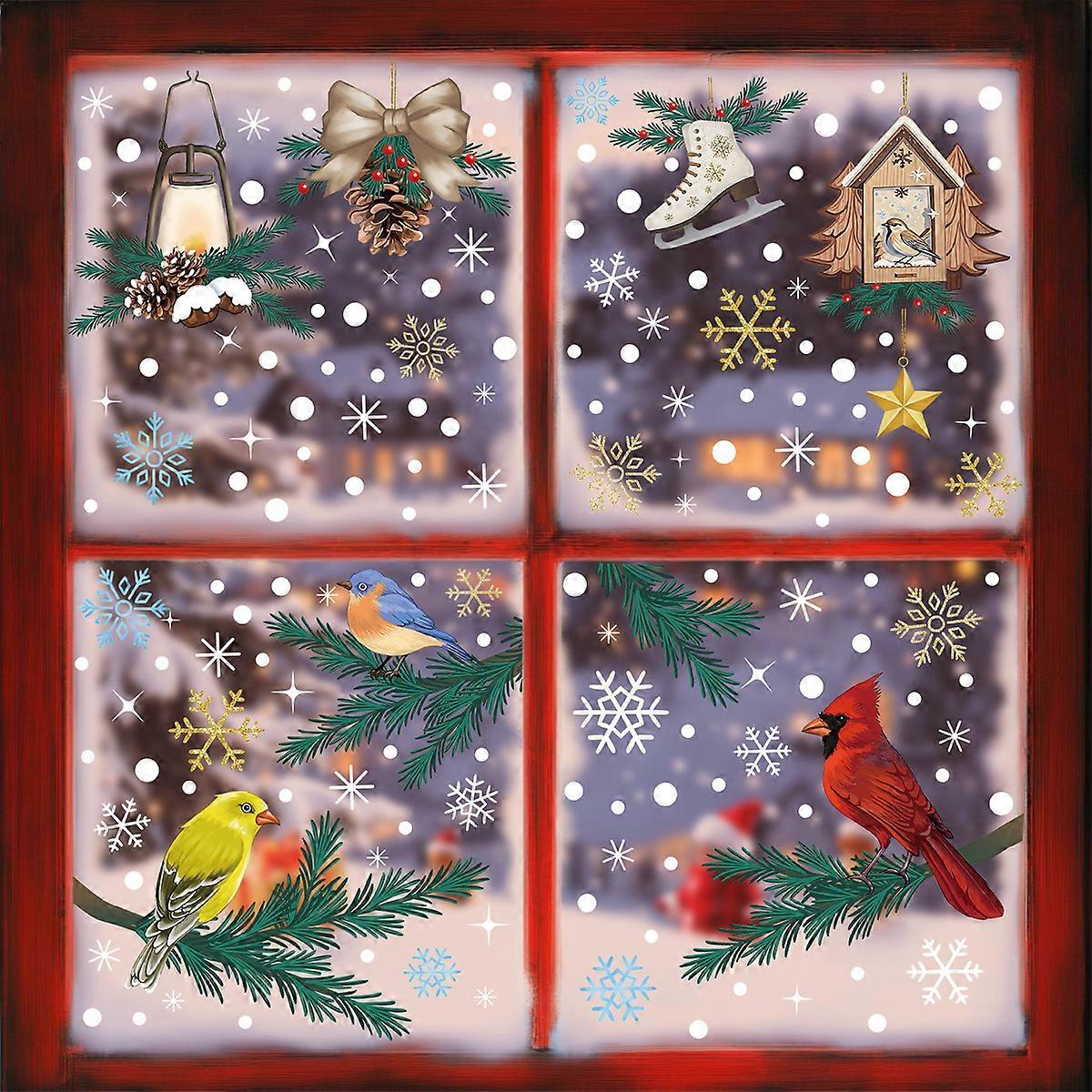 New Christmas Stickers Bird Glass Stickers Room Indoor Glass Decoration Snowflake Static Stickers [4 Combinations] BQ (562-564) + 566