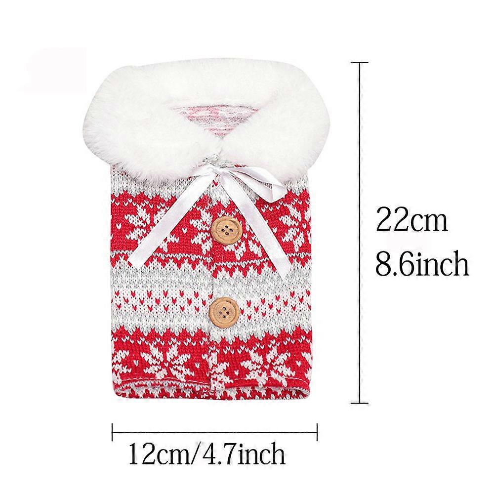 New Creative Christmas Decorations Knitted Button Snowflake Wine Bottle Cover Red Sweater Wine Cover Red Wine Bag Type B