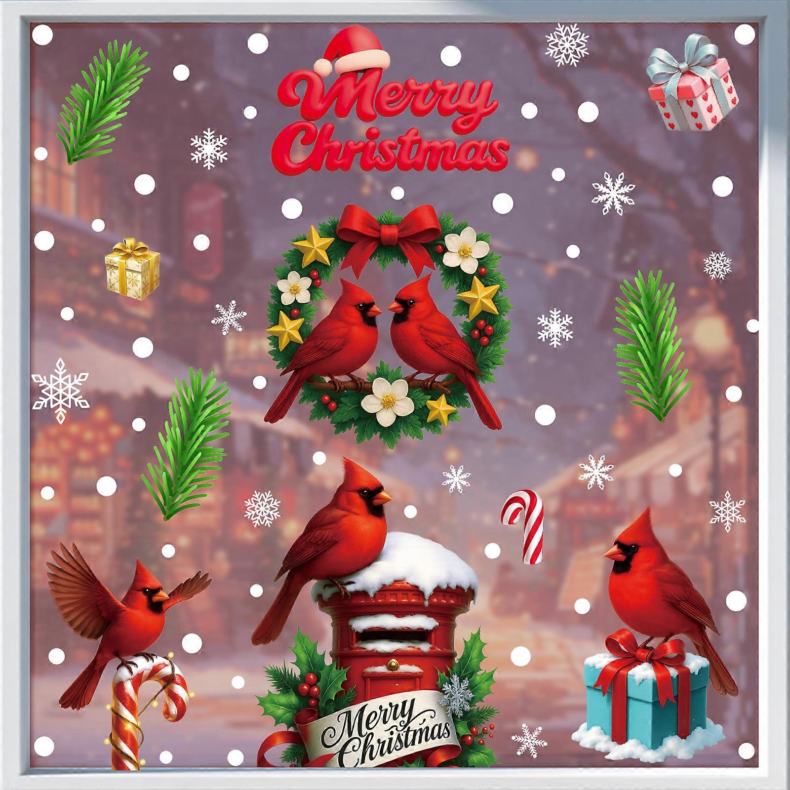 Christmas Stickers Red Bird Wreath Static Stickers Christmas Supplies Gift Box Snowflake Glass Stickers [3 Combinations] BQ (644-646)