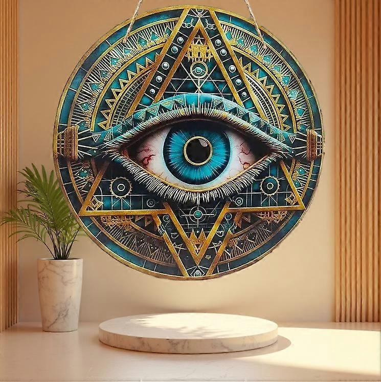 Hot selling home decoration wooden crafts flat printing eye wall decoration wooden disc American pastoral style D30*30*0.4cm
