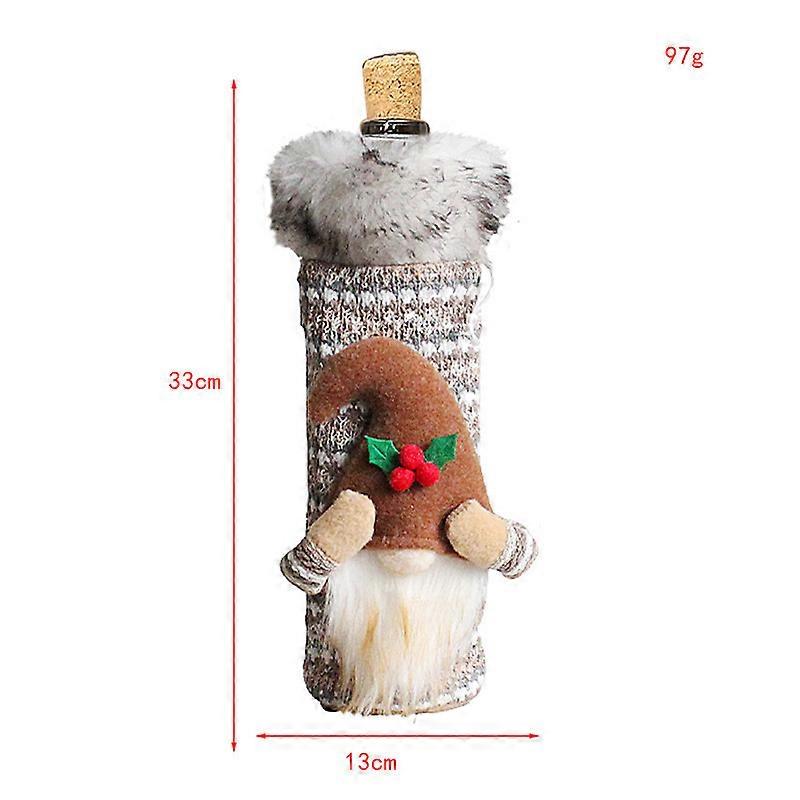 Christmas wine bottle cover face doll red wine packaging bag long hair Christmas wine cover table decoration O3-26 khaki
