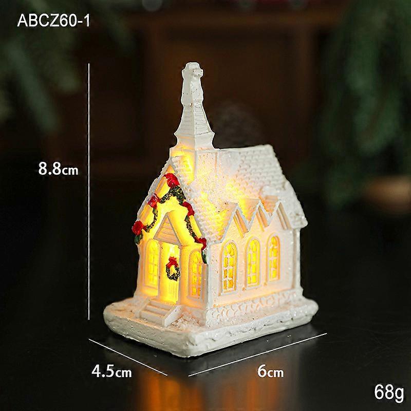 Resin white luminous snow house small house desktop micro landscape small ornaments Christmas cottage Christmas gift style 1