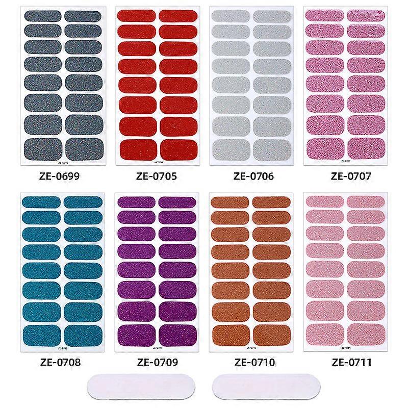 Pure color onion powder flash 16 nail polish film nail stickers hot set nail art stickers full stickers 8 styles one set of bare pieces + two nail