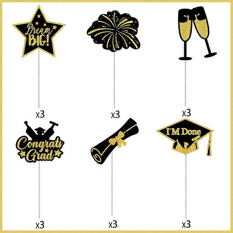New graduation season party decoration pull flag background pull flower cake plug-in graduation theme decoration supplies 18 pcs small insert,