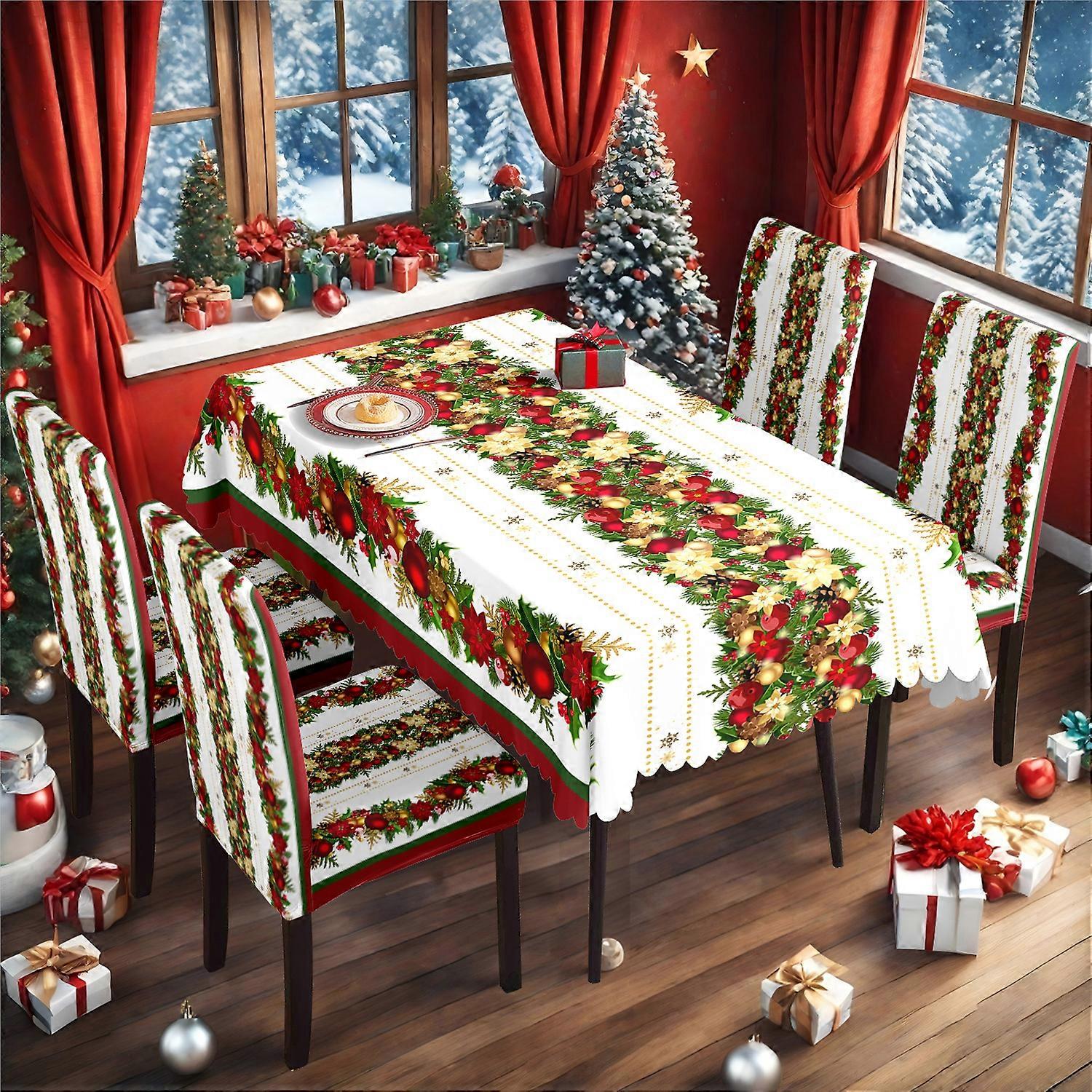 Christmas dining table and chair dust cover fabric anti-slip printed tablecloth chair cover TC-181 set (140*210cm waterproof tablecloth + 4 chair