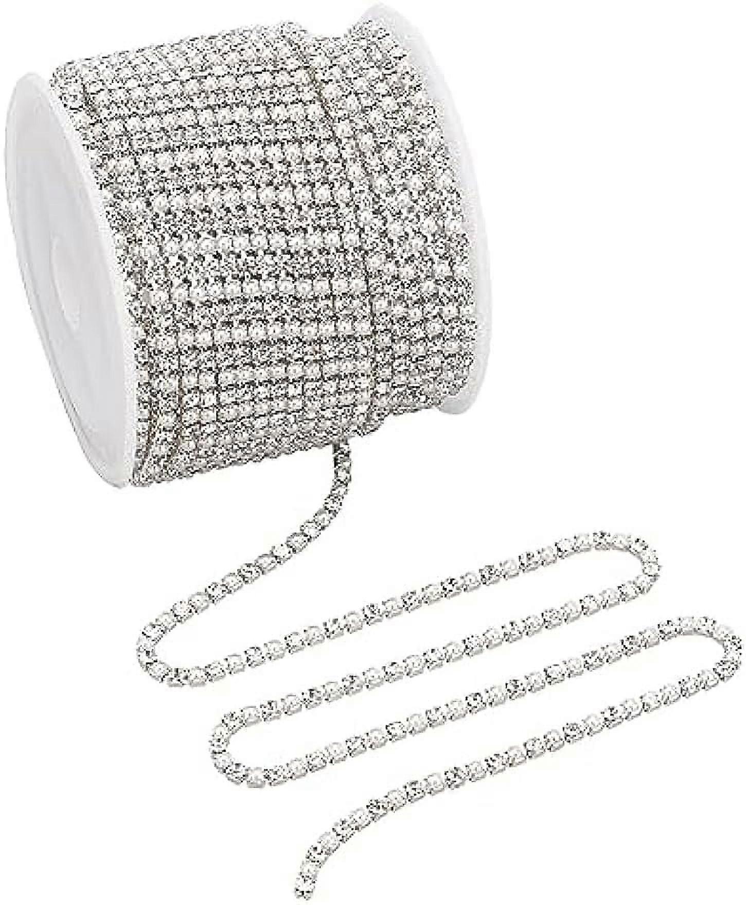 33ft Alloy Rhinestone Cup Chains with Pearl, Silver Rhinestone Close Chain & Flower Trim for Sewing, Craft, DIY Decoration
