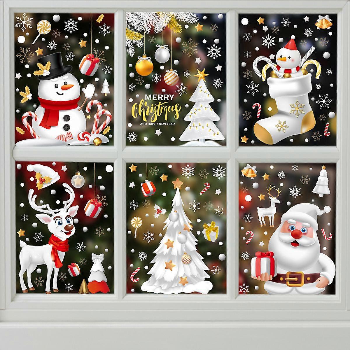Christmas Decoration Candy Cane Igloo Snowflake Static Sticker Santa Claus Elk Snowman Glass Sticker [6 Combinations] BQ431+(433-437)