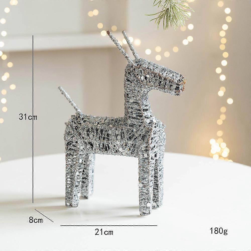 Christmas iron deer Christmas small scene decoration decoration window home decoration props Christmas deer sequin iron deer - silver