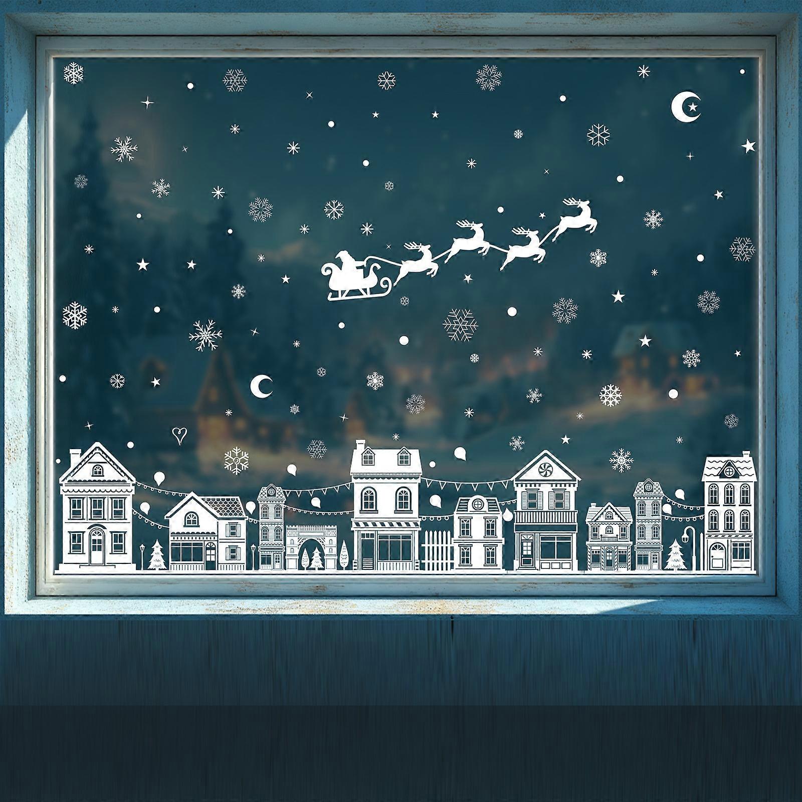 Christmas Decorations Elk Snowflakes Static Stickers Creative Sleigh Moon Snow House Christmas Stickers [3 Combinations] BQ (516-518)