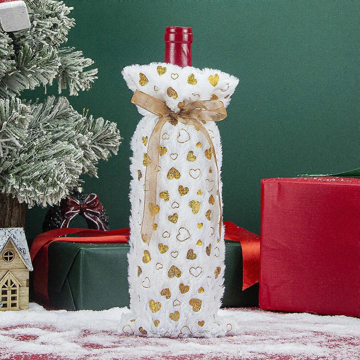 Christmas decorations Christmas wine bottle bag plush hot stamping wine bottle cover gift bag Christmas decoration gift bag D