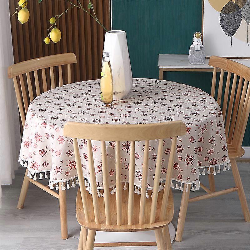 Modern simple Christmas round tablecloth hot stamping cotton and linen tassel round tablecloth living room coffee table tablecloth red snowflake 150