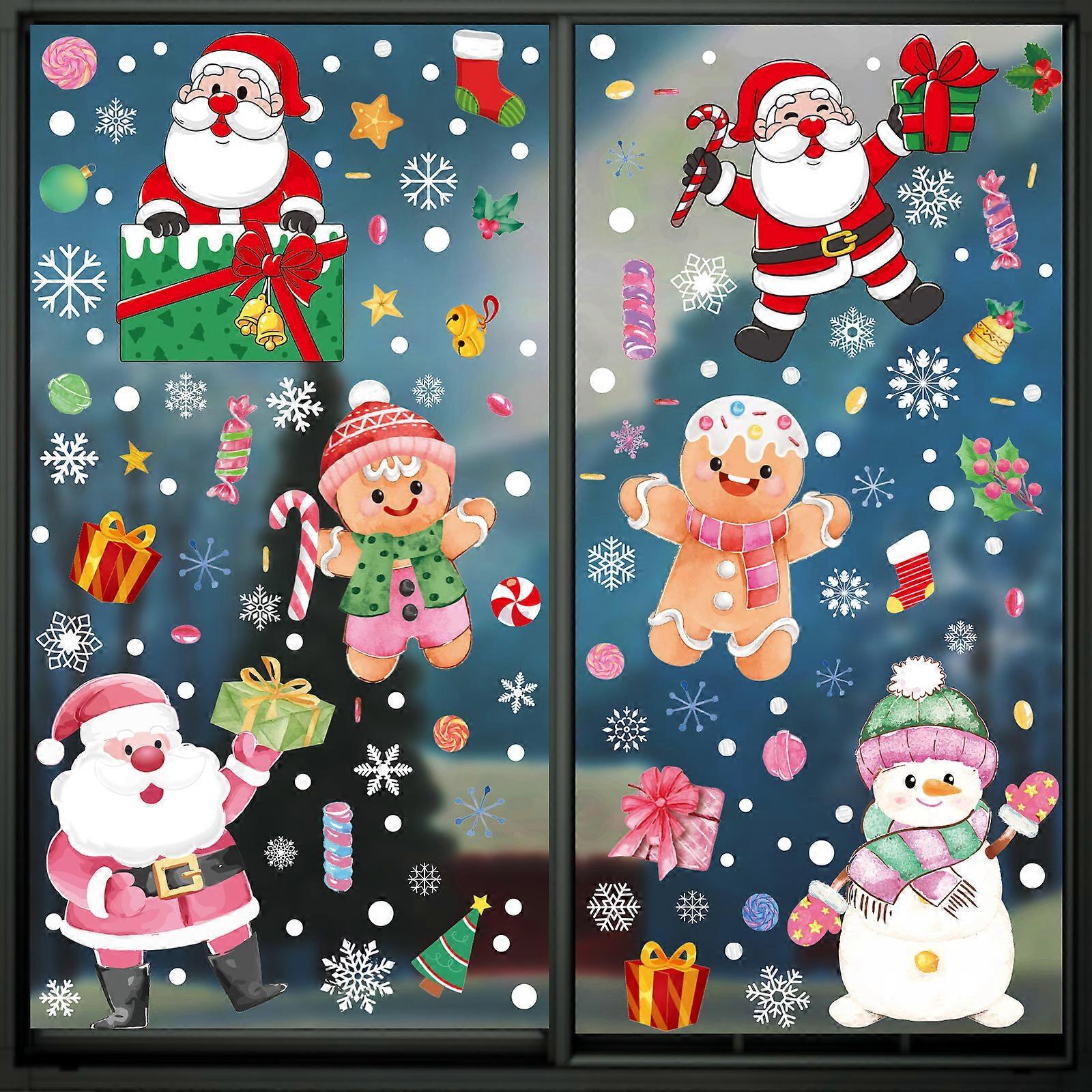 Christmas Stickers, Elk, Snowman, Anti-static Stickers, Christmas Party Supplies, Gift Box, Garland, Glass Stickers [5 Combinations] BQ