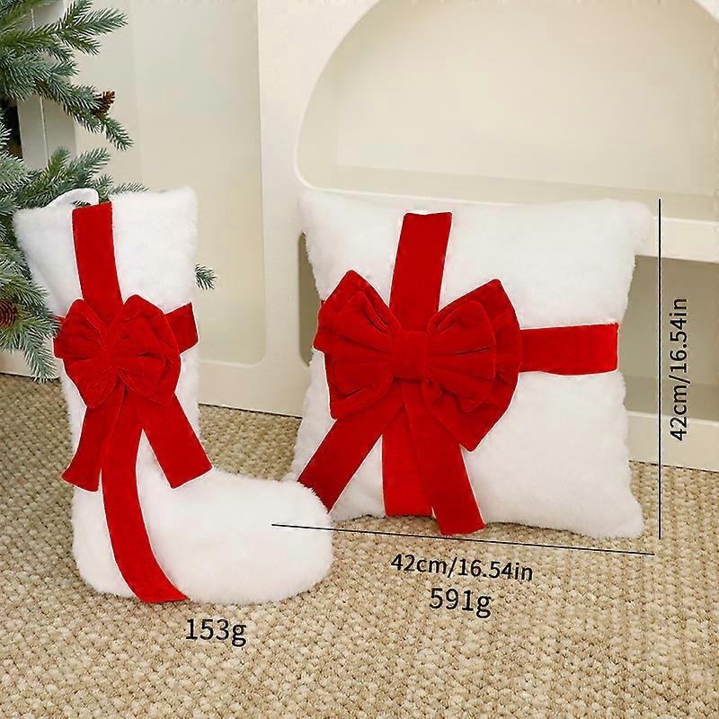 New Christmas pillow socks decoration ornaments DIY children's gift Christmas bow decoration pendant pillow + Christmas socks