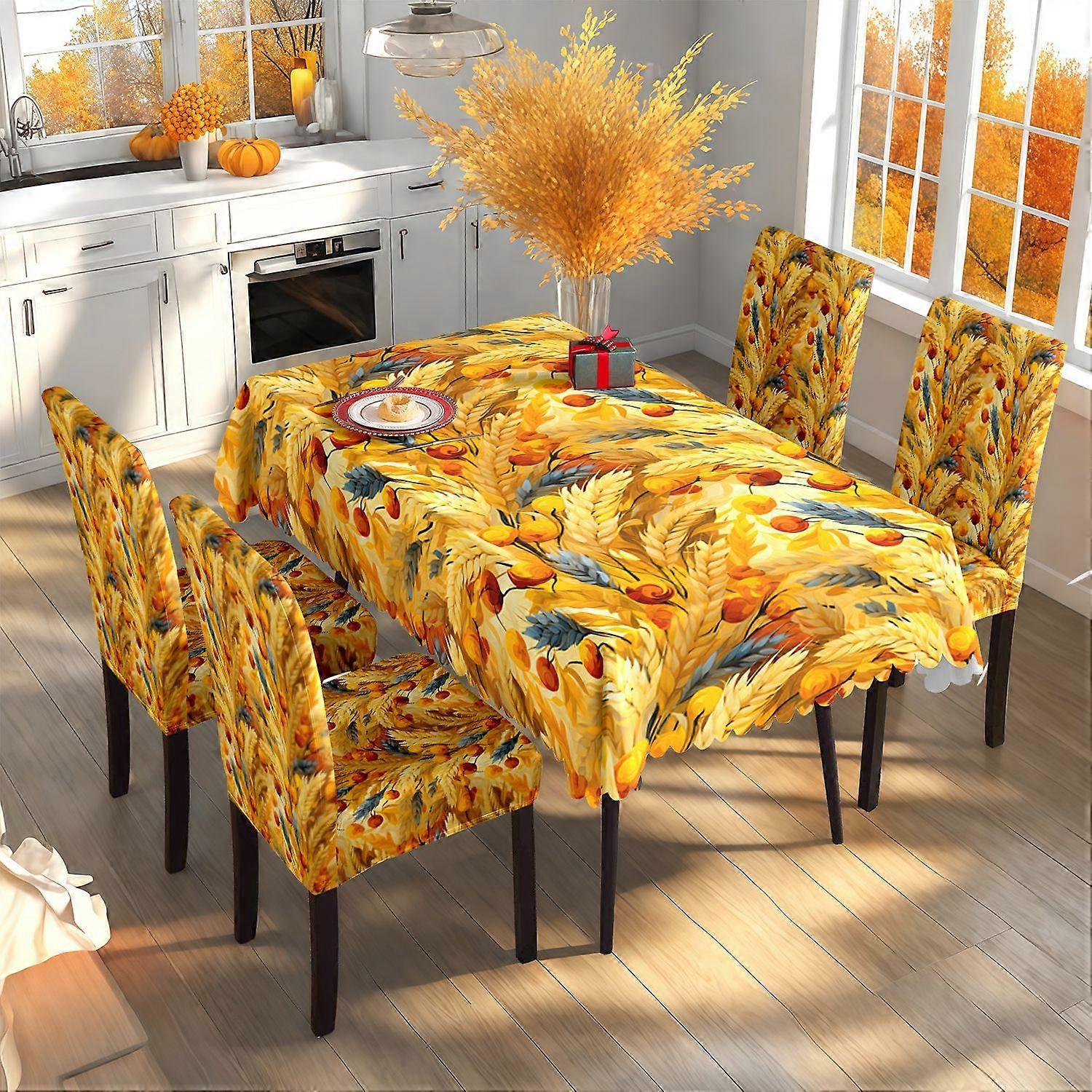 Thanksgiving Autumn Harvest Tablecloth Harvest Theme Print Holiday Tablecloth Set TC-326 Set (140*210cm Waterproof Tablecloth + 4 Chair Covers)