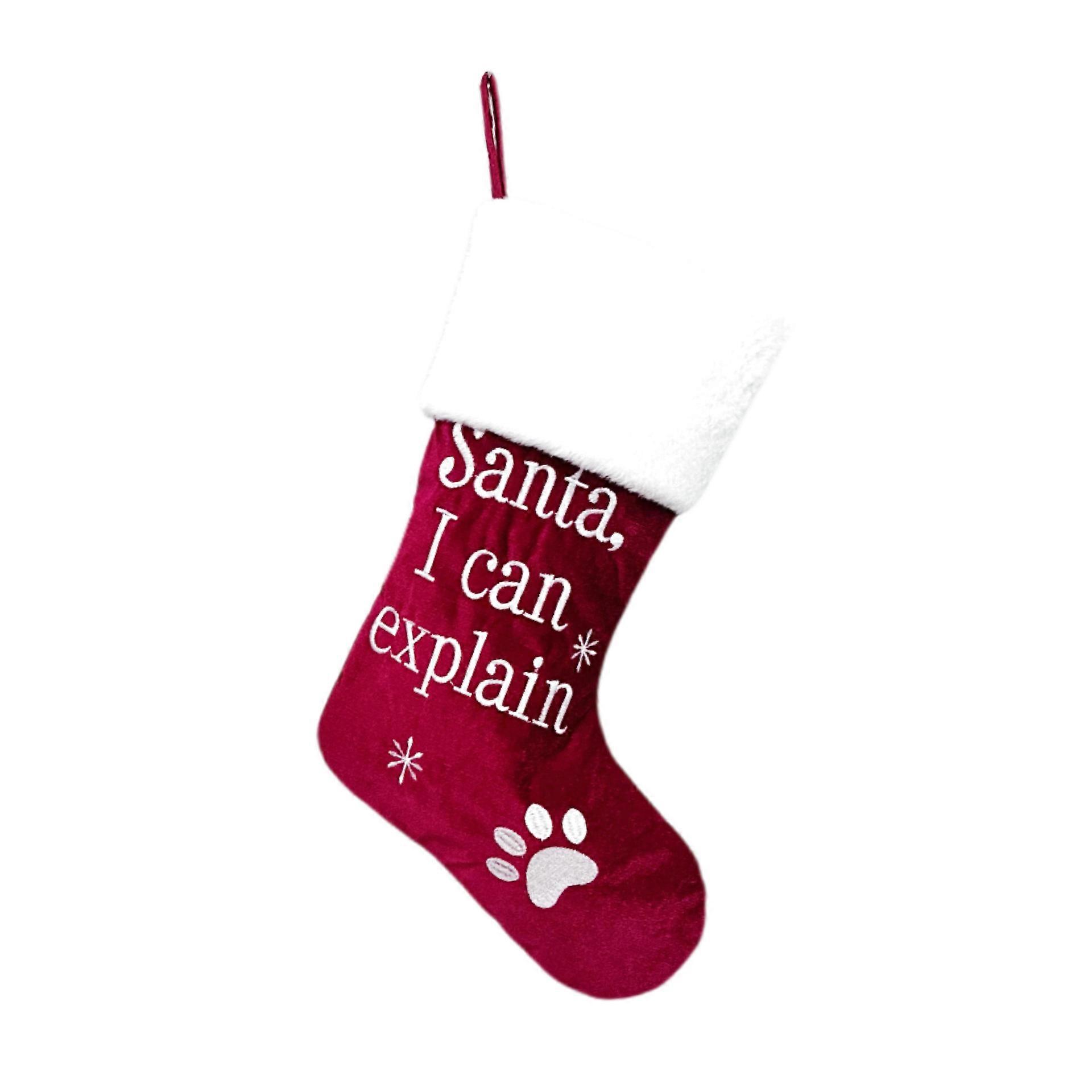 New Christmas socks gift bag Santa Claus embroidery English decorative socks Christmas tree hanging ornaments red velvet socks embroidery [D type 18