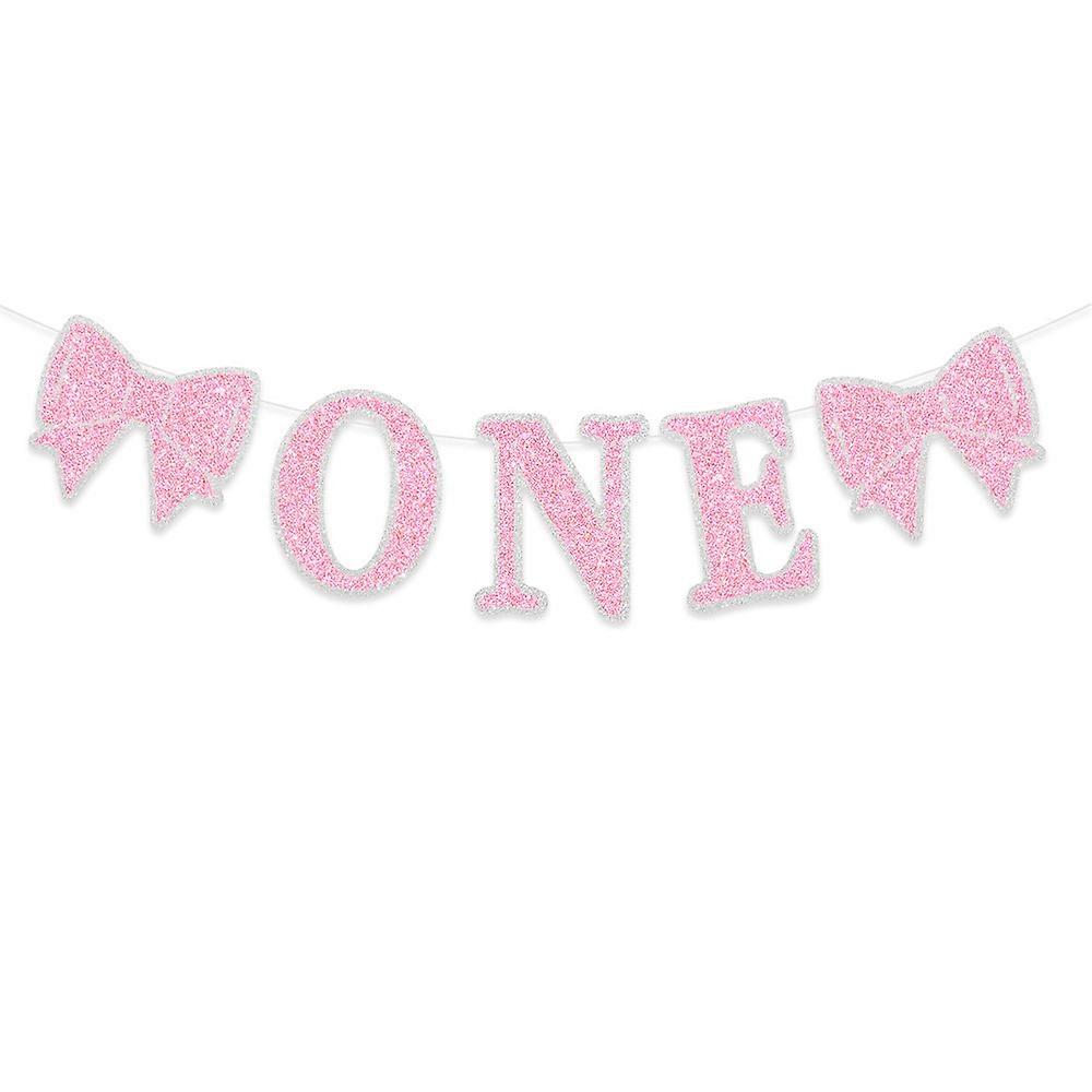New one-year-old birthday ONE pull flag pink bow birthday party decoration banner cake large card one bow pull flag, W-00034-1