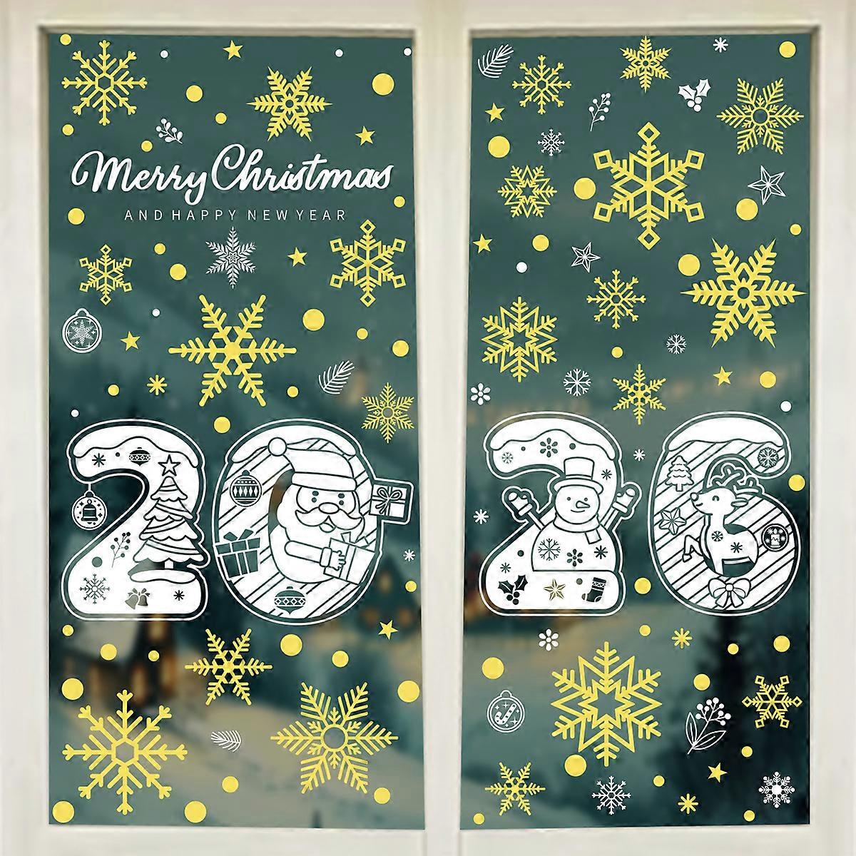 2026 Christmas Stickers White New Year Window Stickers Golden Snowflakes Static Window Decals Christmas Decoration Glass Stickers [2 Combinations]