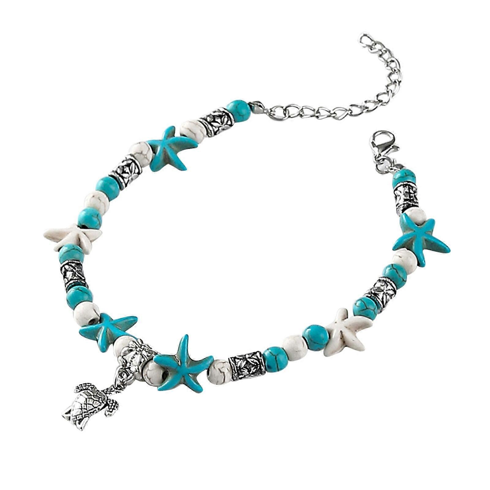 ZHENYANGli Boho Dance Turtle Pendant Single Layer Beach Anklets for Women Ring Beads Pendant Foot Chains Beach Bracelet Anklets