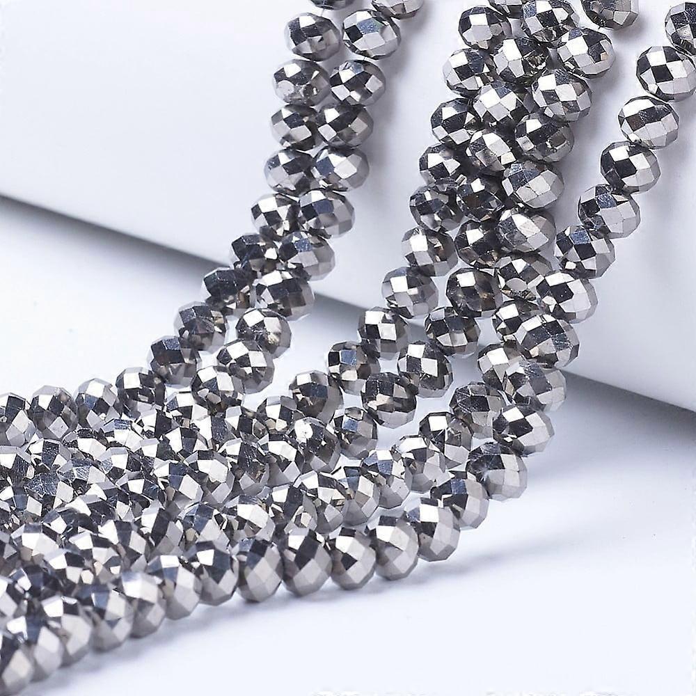 10Strand Electroplate Transparent Glass Beads Strands Full Plated Faceted Rondelle Silver Plated