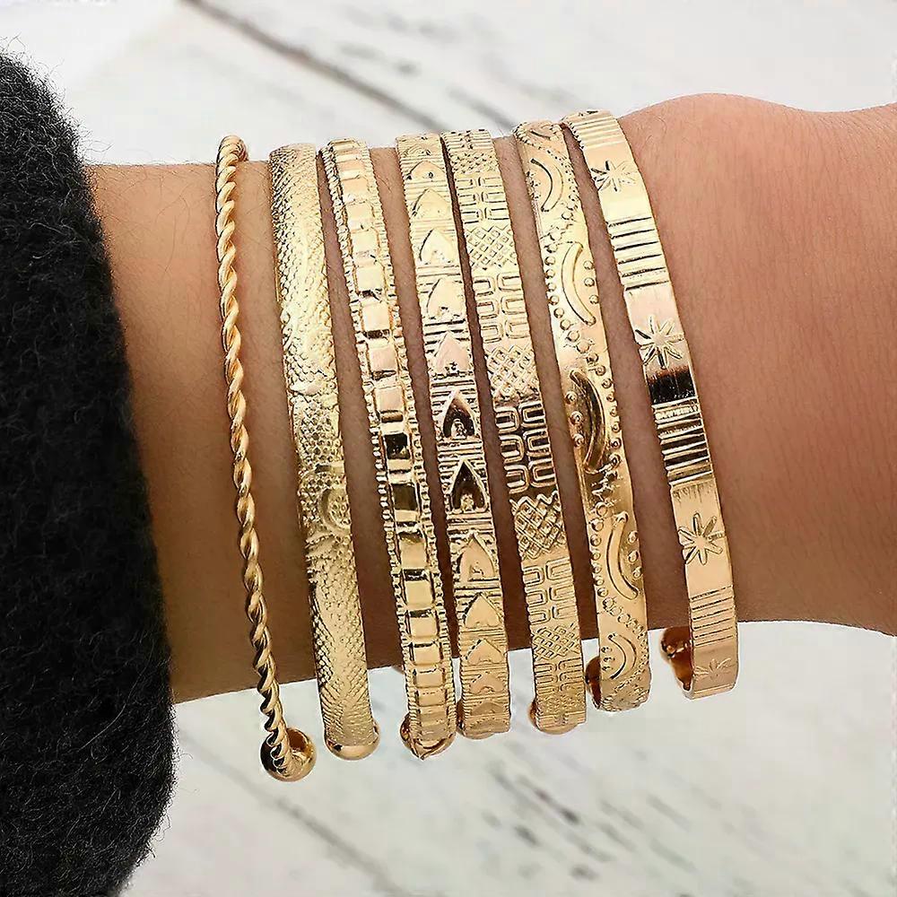 7Pcs Fashion Elegant Hexagon Star Twist Design Bangle Set For Women Gold Color Bracelet Vintage Hand Party Jewelry Gift
