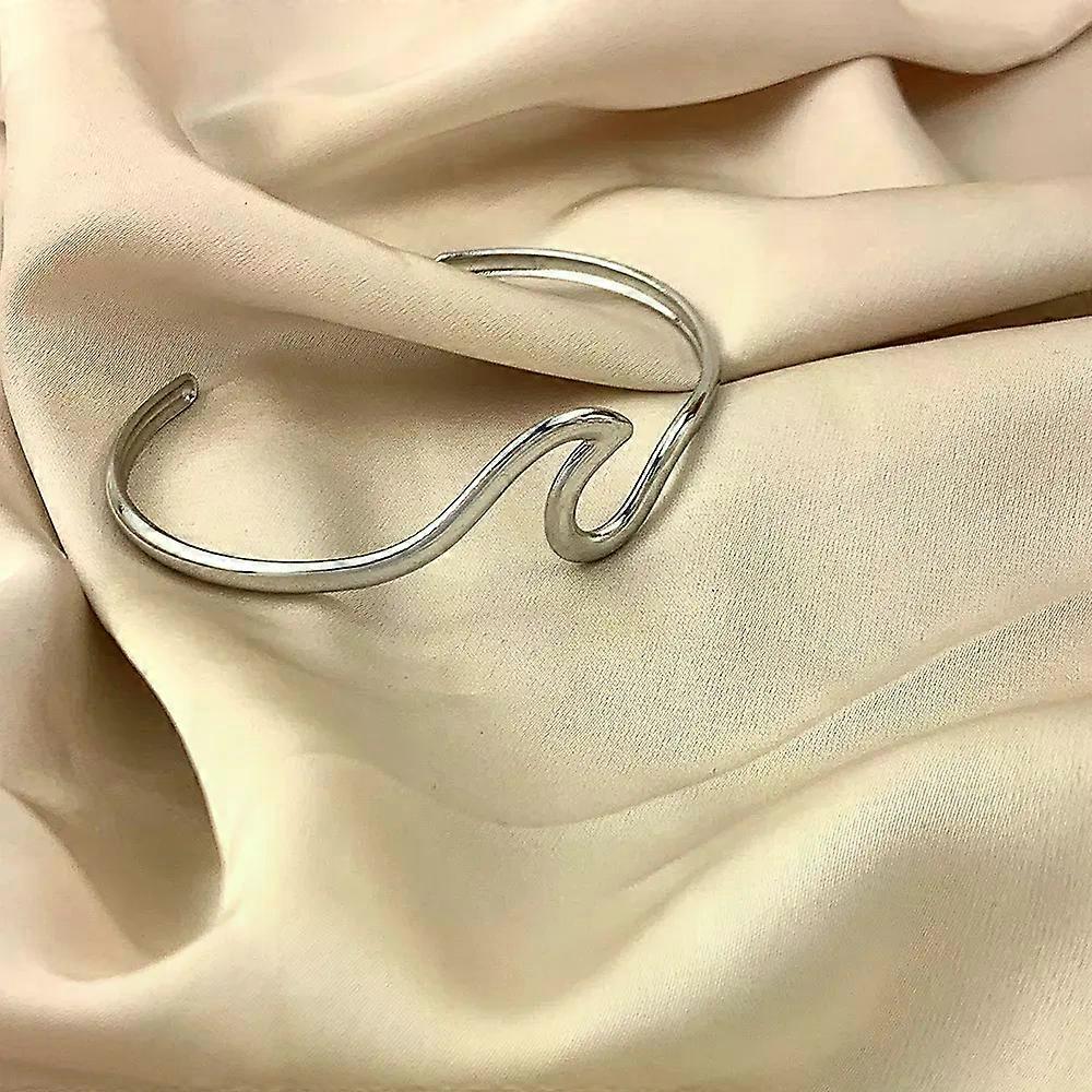 Bangles for Women Irregular Wave Twisted Stainless Steel Open Cuff Bracelets Silvery Gold Girl Fashion Jewelry Birthday Gifts