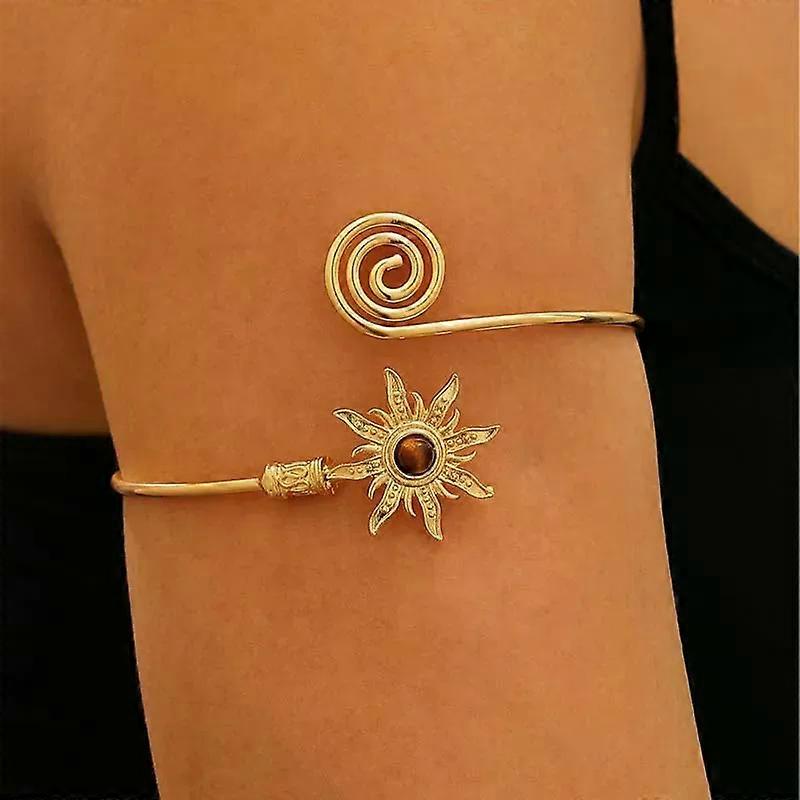 Bohemian Sun Spiral Metal Arm Bracelets for Women Fashion Classic Opening Cuff Bangles Vacation Charm Jewelry Accessories Gifts