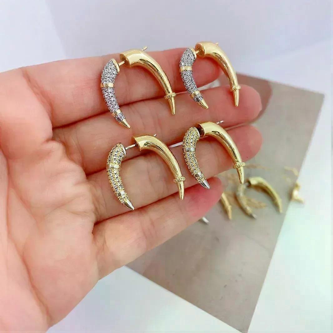 Geometric Fashion Hoops Zircon Embedded 18K Gold Plated Real Gold Earrings Vintage Stylish Jwellery Accessories