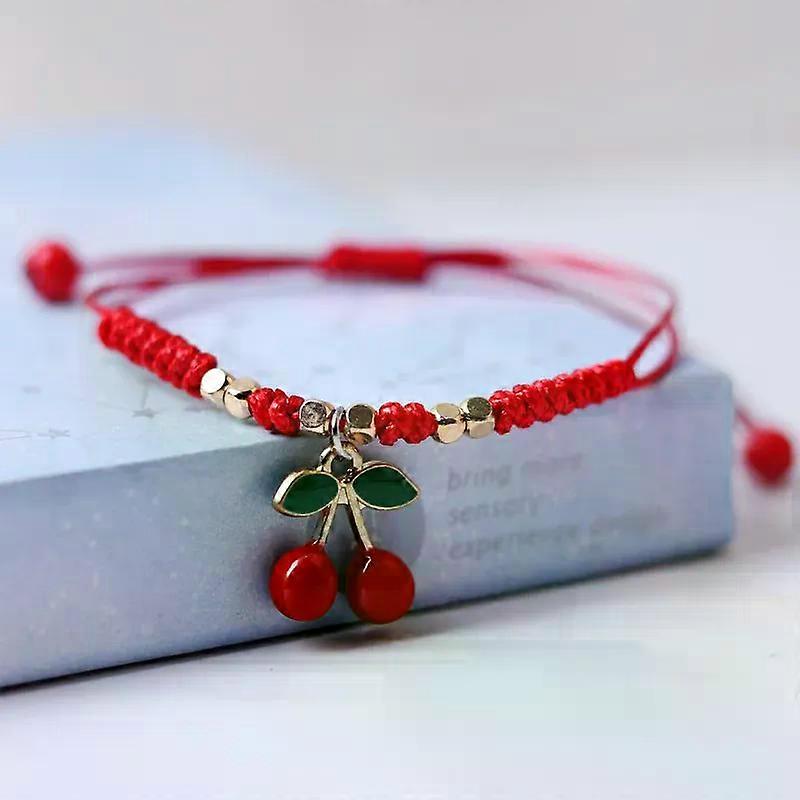 Strawberry Cherry Pendant Lucky Red Rope Braided Bracelet New Year Christmas Birthday Party Gift Fruit Accessory Bracelet