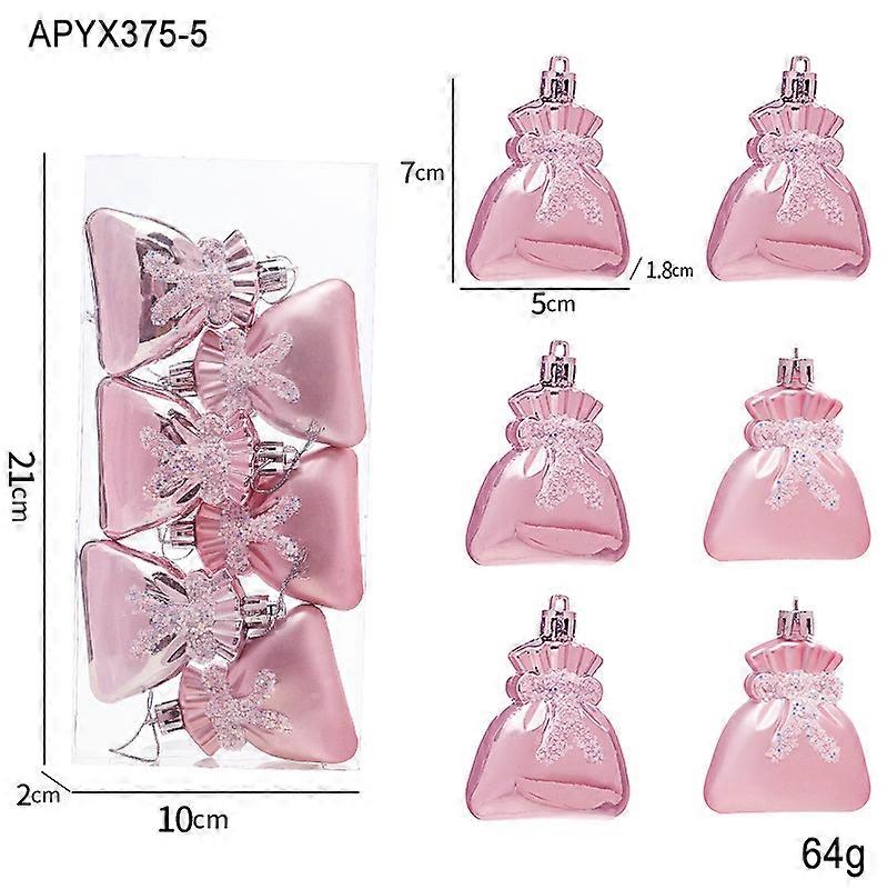 Pink Christmas ball shaped pendant box set Star fruit love Christmas tree decoration pendant electroplating color Christmas pink blessing bag (6 /