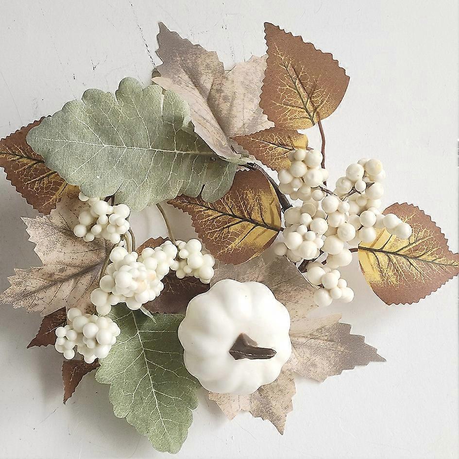Harvest Festival Farmhouse Decoration Farmhouse Thanksgiving Maple Leaf Berry White Pumpkin Set Wreath Ornaments Pendant White Pumpkin Mini Candle
