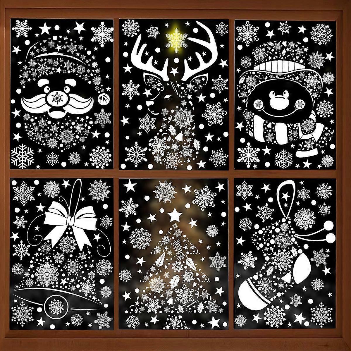New Christmas decoration bell gift box snowflake glass sticker Santa Claus elk static sticker [6 combinations] BQ (472-476) + 478
