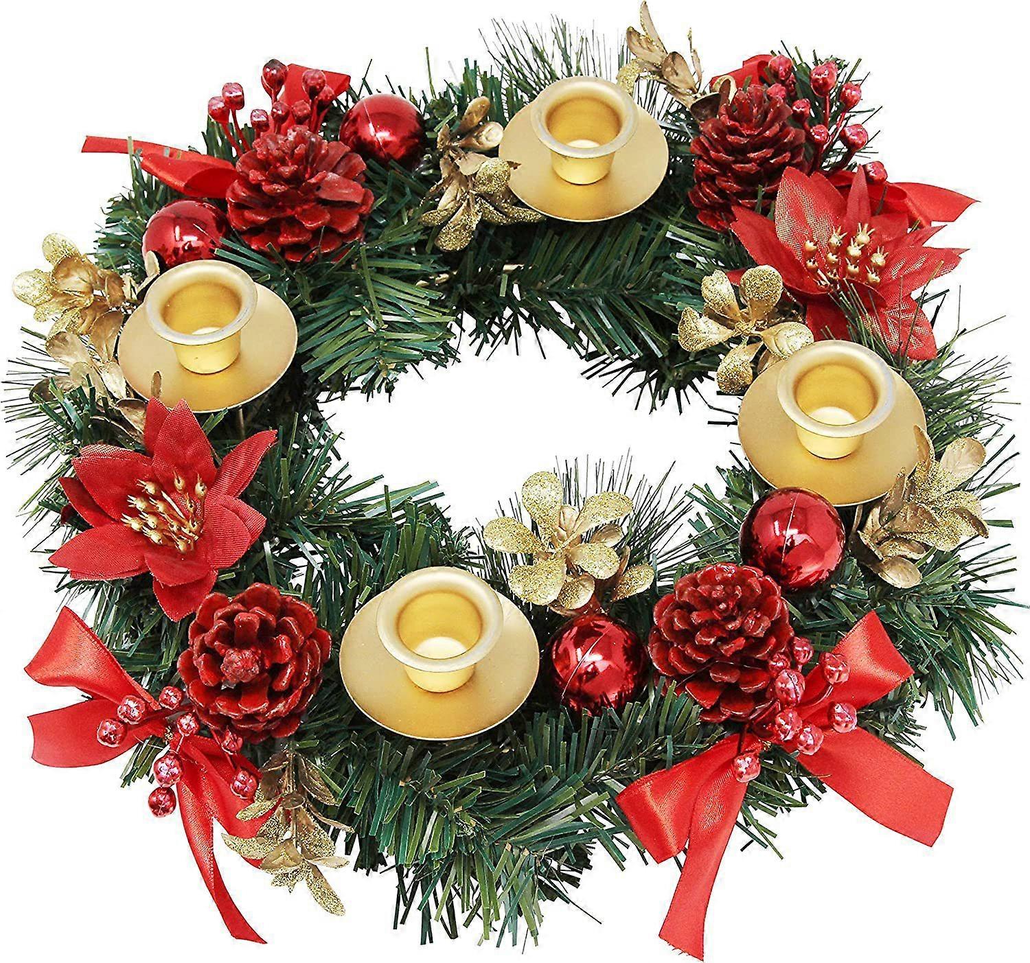 Christmas advent candlestick wreath decoration ornaments door hanging candle holder candle cup wreath rattan church pendant 30cm red flower