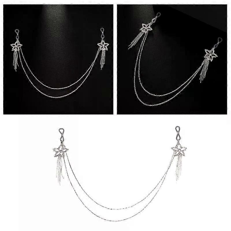 Rhinestones Star Tassels Nipple Chain Noose Rings No Piercing Nipple Jewelry for Women Festival Club Bra Body Chain _x000D_ Features: _x000D_ Elevating your styles with our exquisites Star Tassels Nipple Chain, feature delicate star designs and tassels that add touch of sensually allures and fashion forward appeal. _x000D_ Crafts from quality alloys with quality plating, this accessory promise long use shining and comfortable. _x000D_ Perfect for fashion forward women who seek individuality and styles, particularly appealing to trendsetters and those want for unique accessory. _x000D_ for parties, nightclubs, or special dates night, this nipple chain enhances your ensembles with distinct charm and eye catching presences. _x000D_ This body jewelry seamlessly integrates into your wardrobe, offering versatility and fashion statement that complements various outfits and occasion. _x000D_ _x000D_ _x000D_ Specifications: _x000D_ Component: Alloys _x000D_ Optional Color: Gold, Silver _x000D_ Length: 36.5cm/14.37in _x000D_ Quantity: 1pc _x000D_ _x000D_ _x000D_ Package Includes: _x000D_ 1pc Body Chain _x000D_ _x000D_ _x000D_ Note: _x000D_ Please allow 1-3cm error due to manual measurement. please sure you not mind before you bid. _x000D_ Due to difference between different monitors, the picture may not reflect the actual color of the item. _x000D_ _x000D_ _x000D_ _x000D_