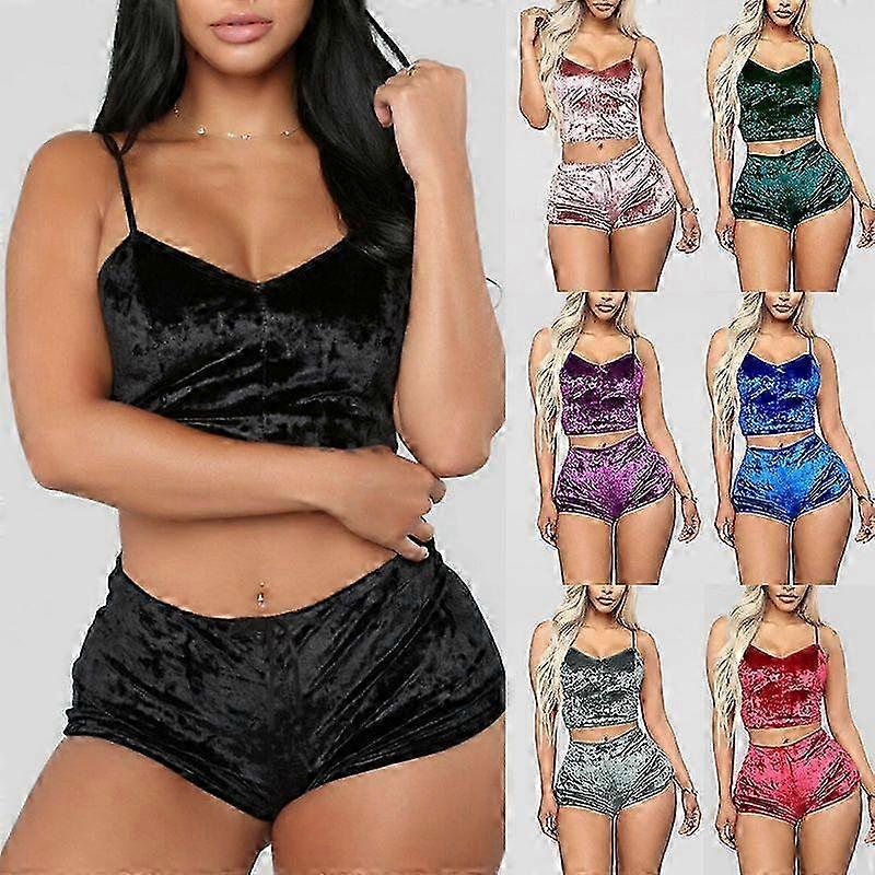 Sexy Women's Velvet Spaghetti Strap Pajama Set Shorts for Sleepwear