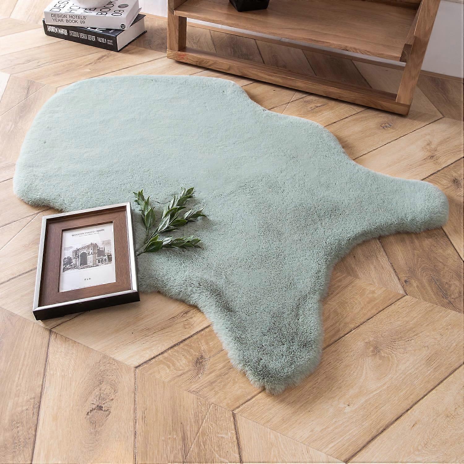 Phantoscope Deluxe Soft Faux Rabbit Fur Collection Asymmetrical Decorative Home Decor Modern Area Rug, Green