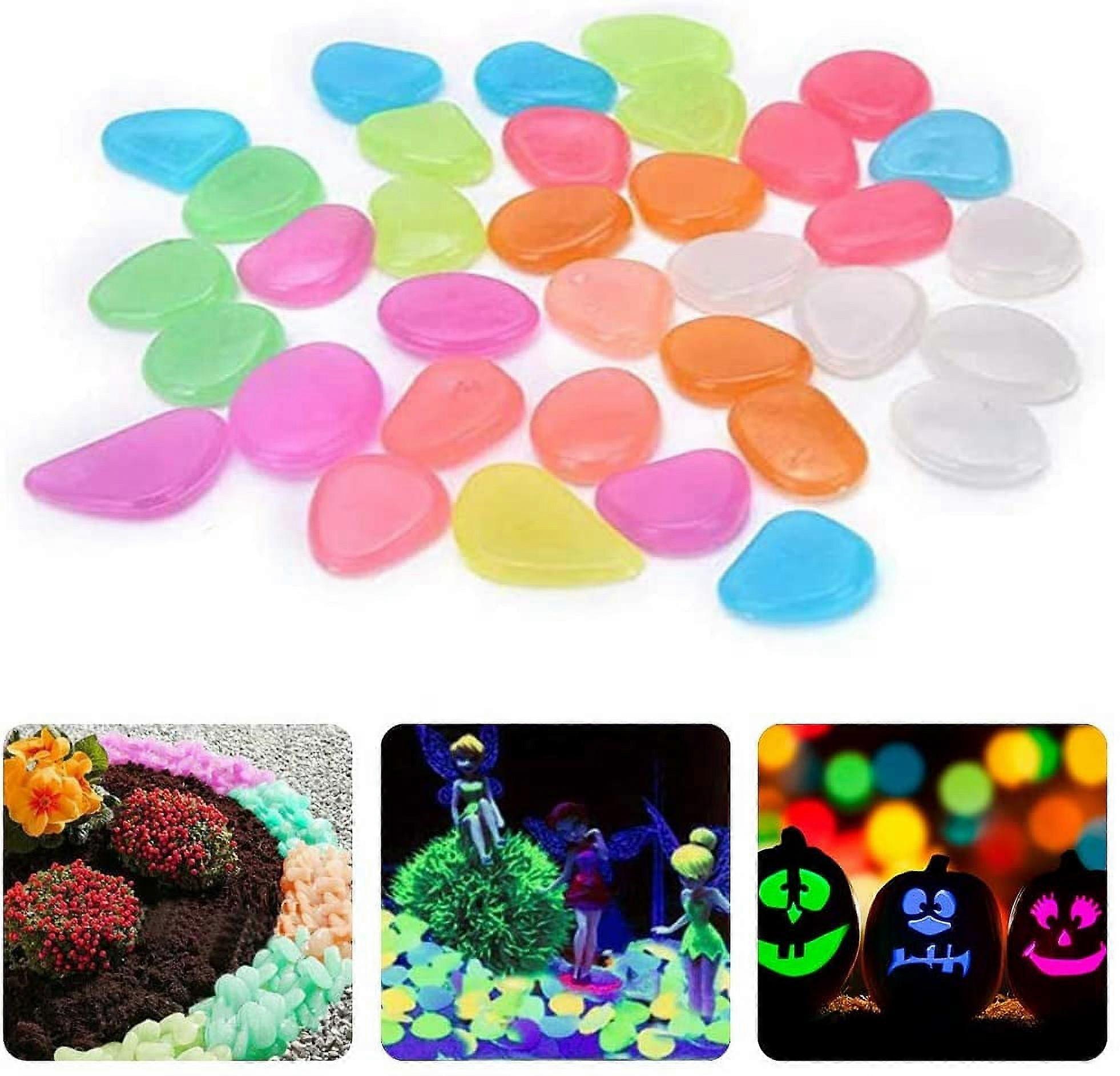 Limei 100pcs Glow in The Dark Rocks 0.9" White Irregular Pebbles for Fish Tank, Pond, Bonsai, Garden, Patio, Pathway, Pool Decoration