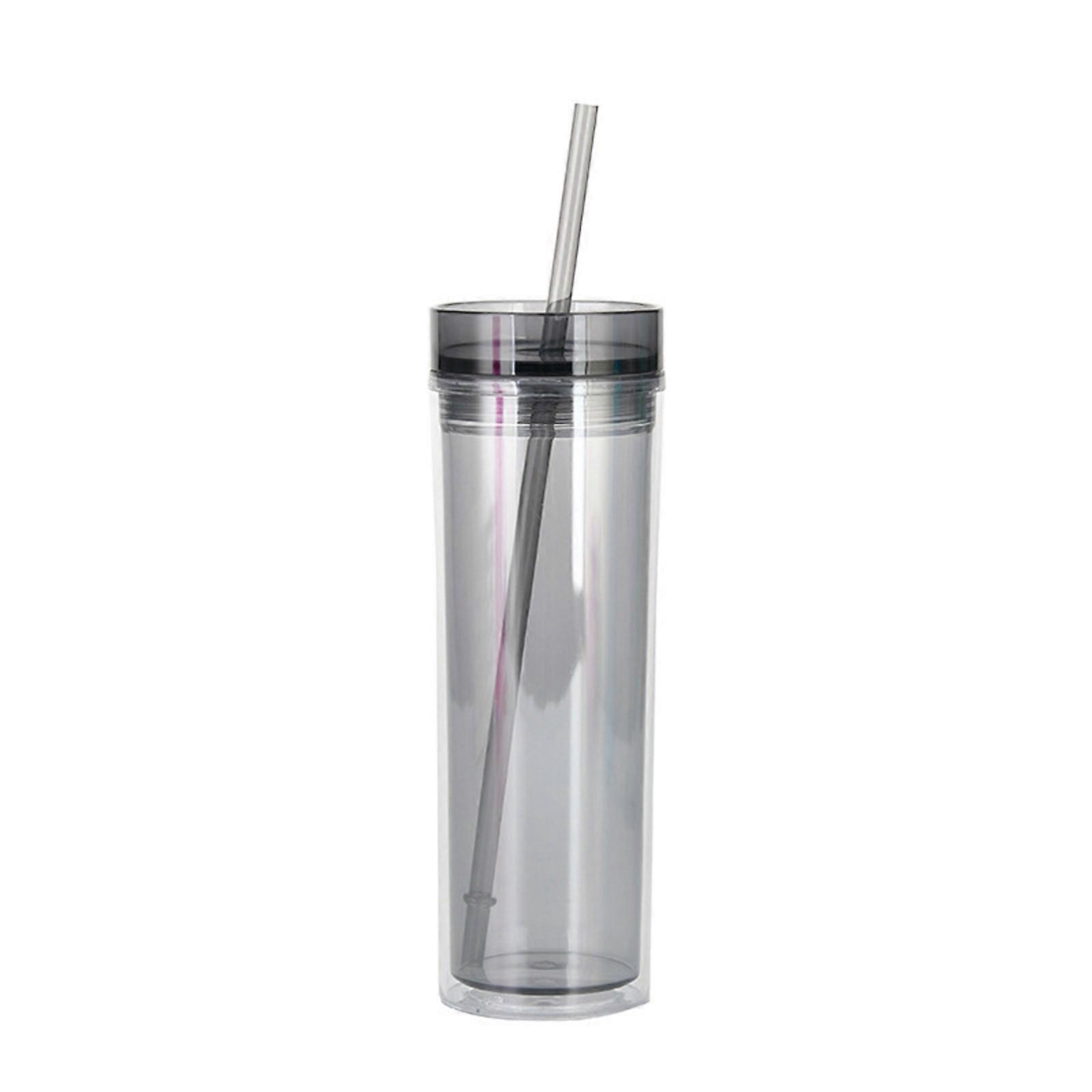 GARENAS Tumbler with Same Lid and Straw 16 Oz CupDouble Clear Cup Straight Sippy Cup Summer Simple Sports Water Cup(Black)