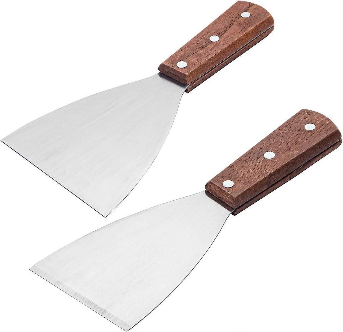 2PCS Stainless Steel Slant Grill Griddle Spatula Scraper with Riveted Wooden Handle, Compatible with Blackstone Griddle, Barbecue Supplies