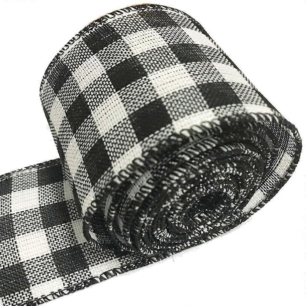 2.5 Inches 6.6 Yards Gingham Ribbon Wide Ribbon Taffeta Plaid Ribbon for DIY Craft Party Gift Christmas Supplies (Black White)