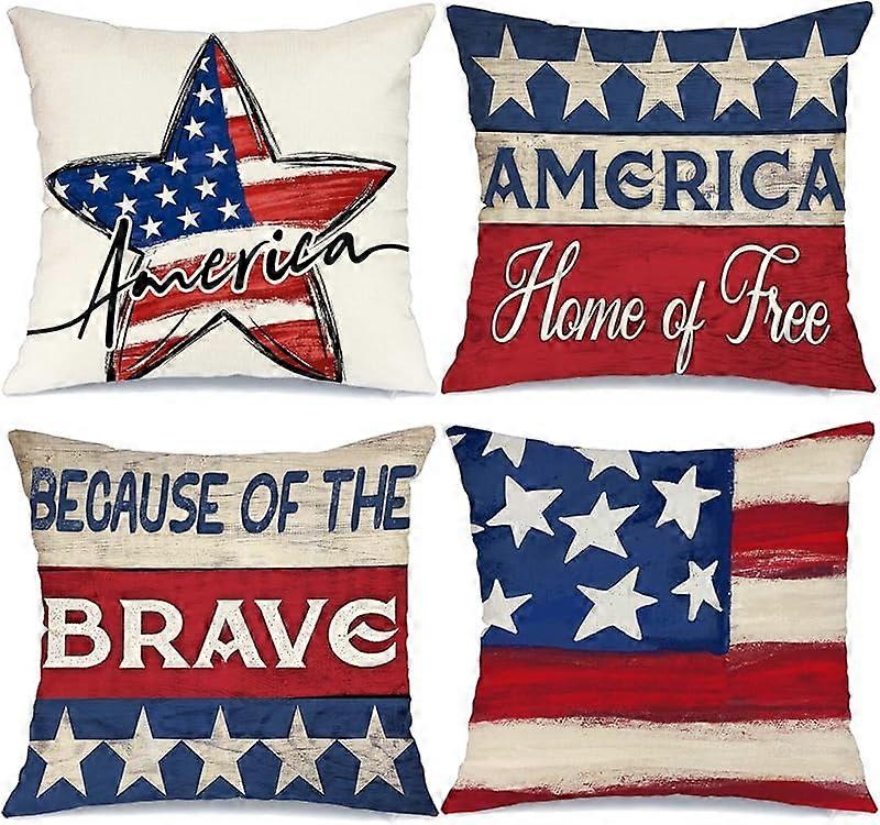 4th of July Pillow Covers 18x18 Set of 4, America Flag Stars & Stripes, God Bless America Throw Pillows, Patriotic Cushion Cases for Memorial Day