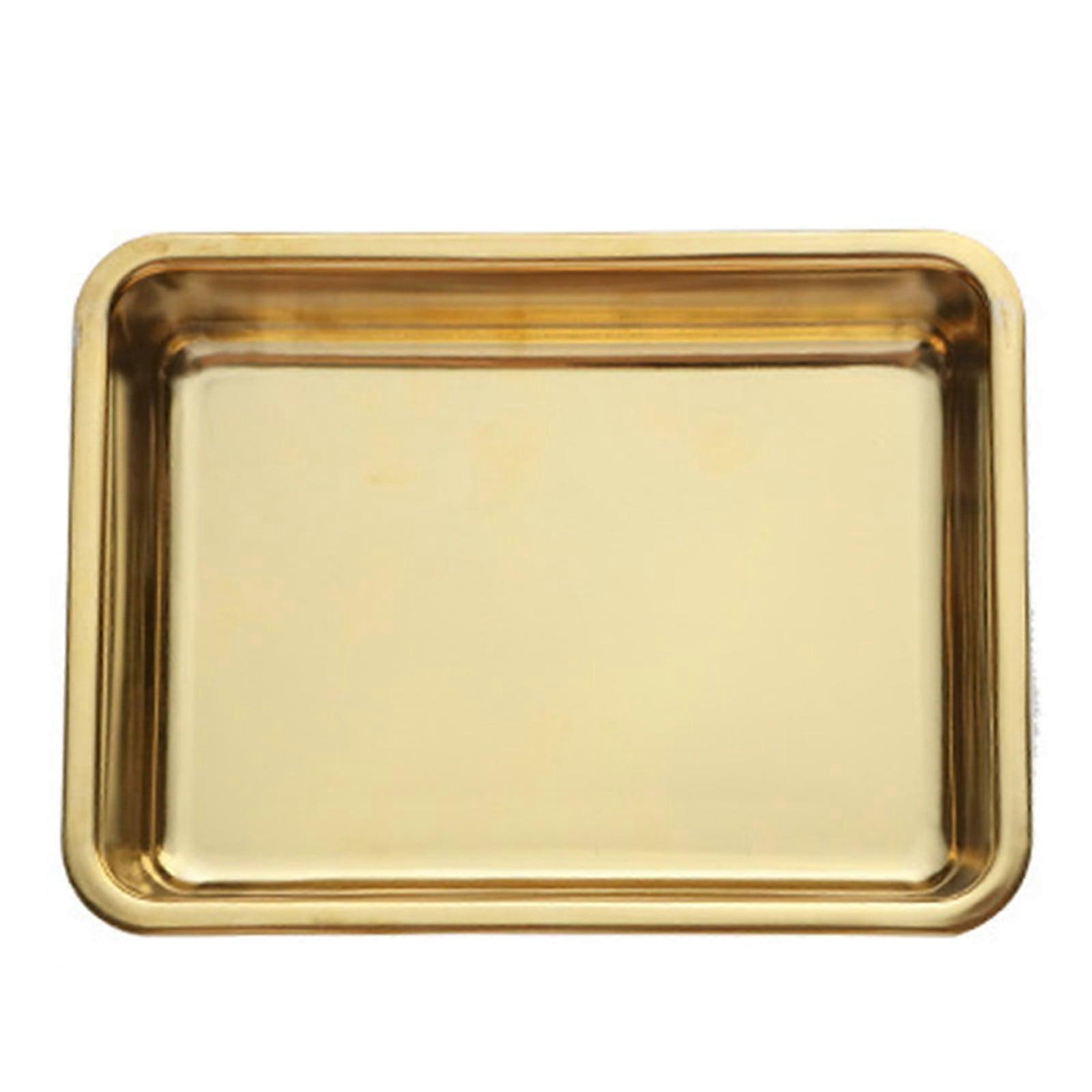GGdda Dish Set, Stainless Steel Snack Tray with Ears, 16*11.5*3.5cm, Gold, Compatible with Barbecue & Dessert, Kitchen Gadget (Clearance)