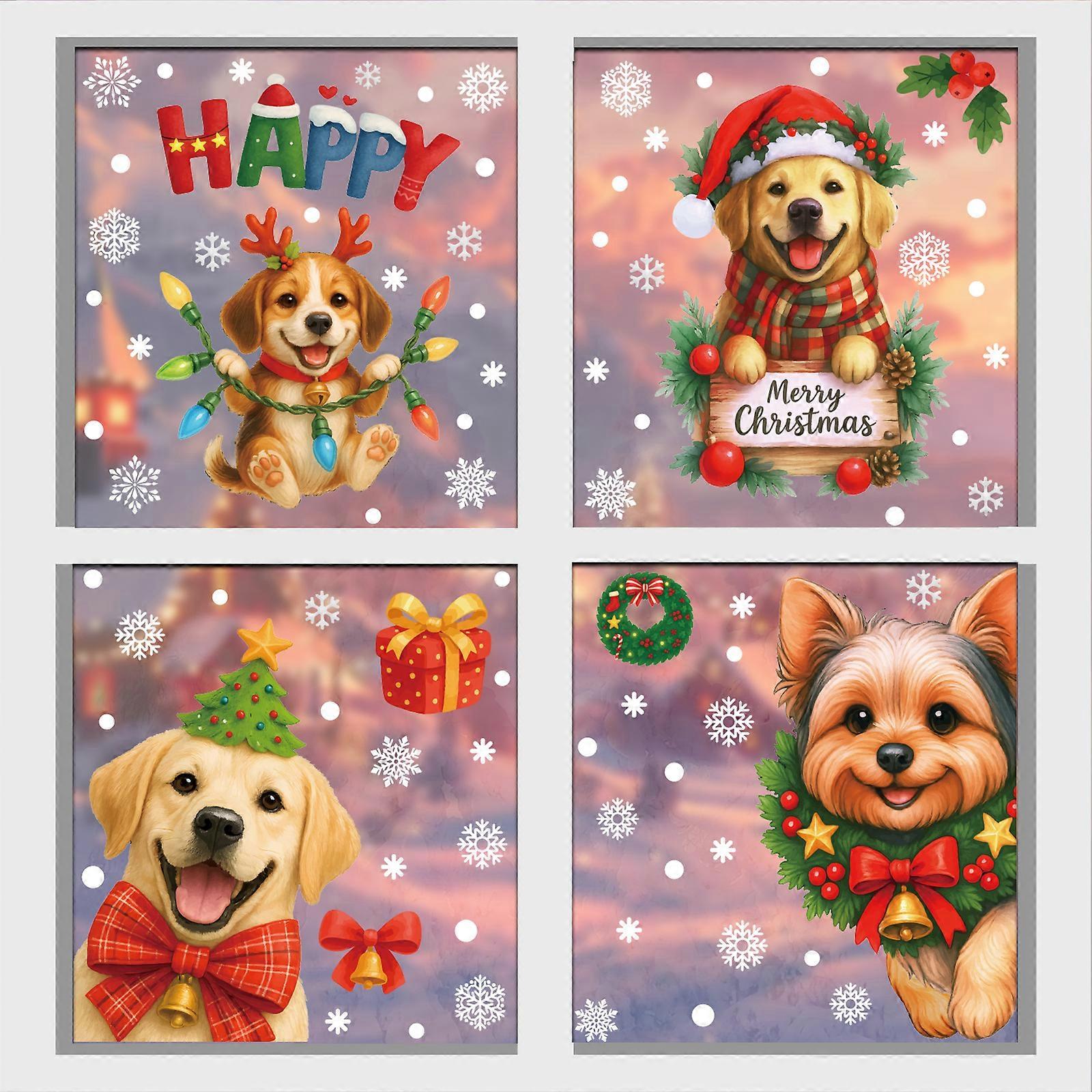 Christmas puppy stickers for glass window decoration, Christmas atmosphere, window garland, gift box, static stickers [4 combinations] 619+620+622+623