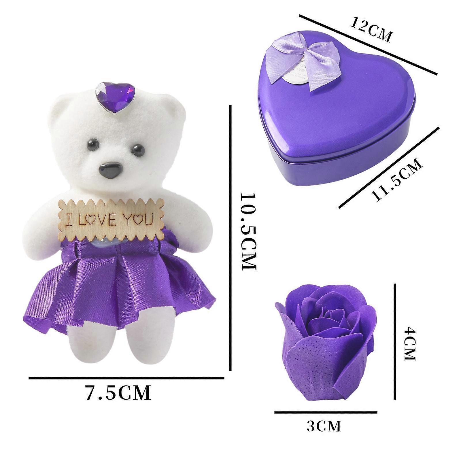 New Arrival Soap Flower Heart-Shaped Bear Rose Iron Gift Box Mother's Day Gift Women's Day 520 Gift Iron Box Heart-Shaped 3 Flowers + Bear Doll Purple