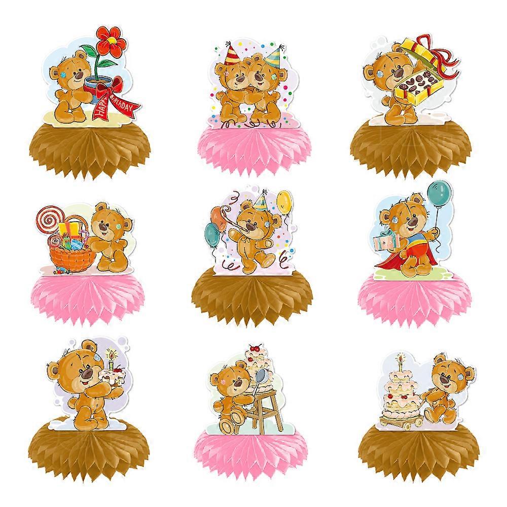 Birthday party bear honeycomb ornaments children's first birthday honeycomb table table atmosphere decoration 9pcs/pack XYL-0048