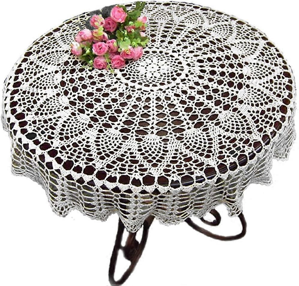 Limei 39.37inch White Round Handmade Crochet Sunflower Tablecloth Cotton Lace Table Doilies