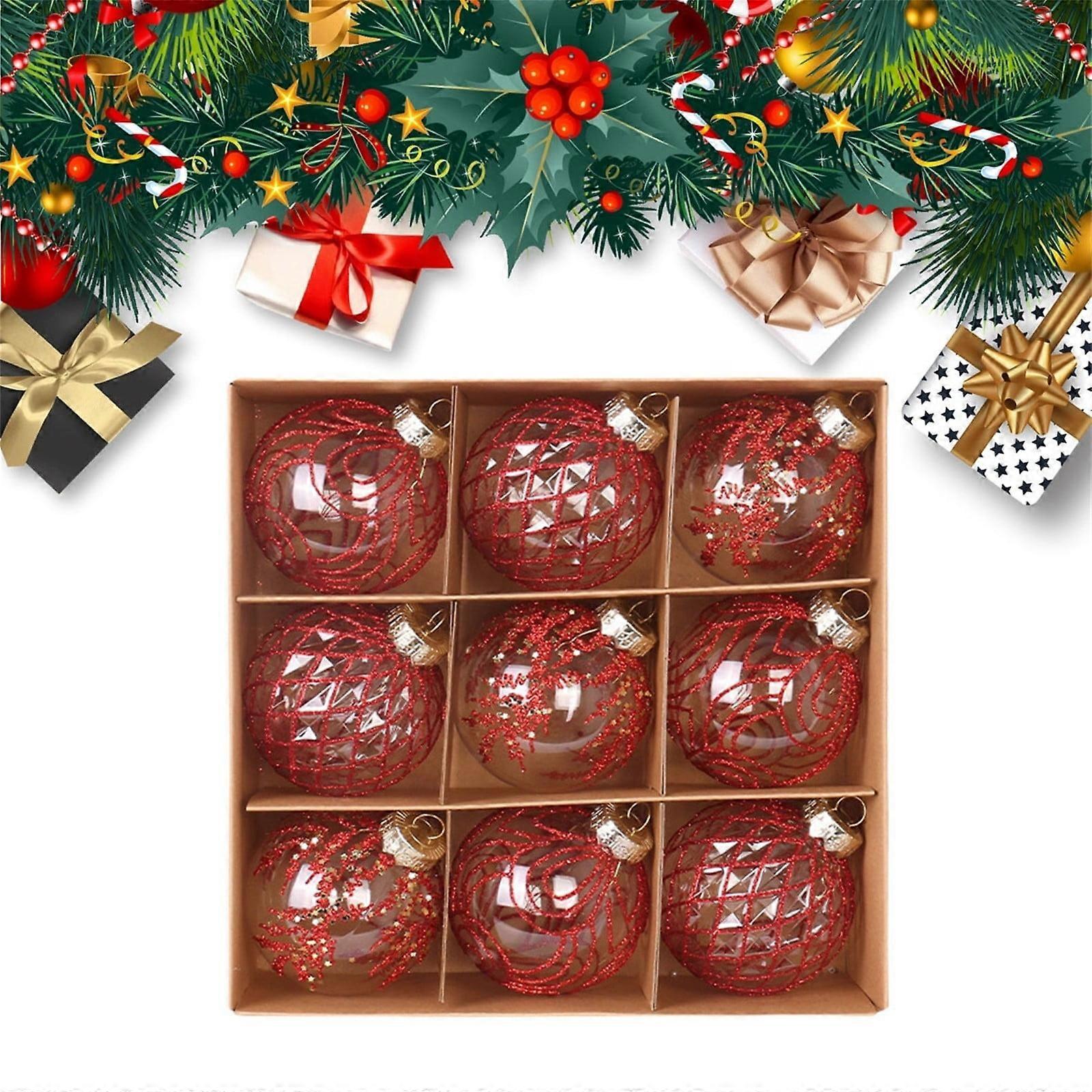 9PCS 3.15" Clear White Christmas Ball Ornaments, Shatterproof Xmas Tree Baubles with Hanging Supplies for Christmas, Wedding Decorations