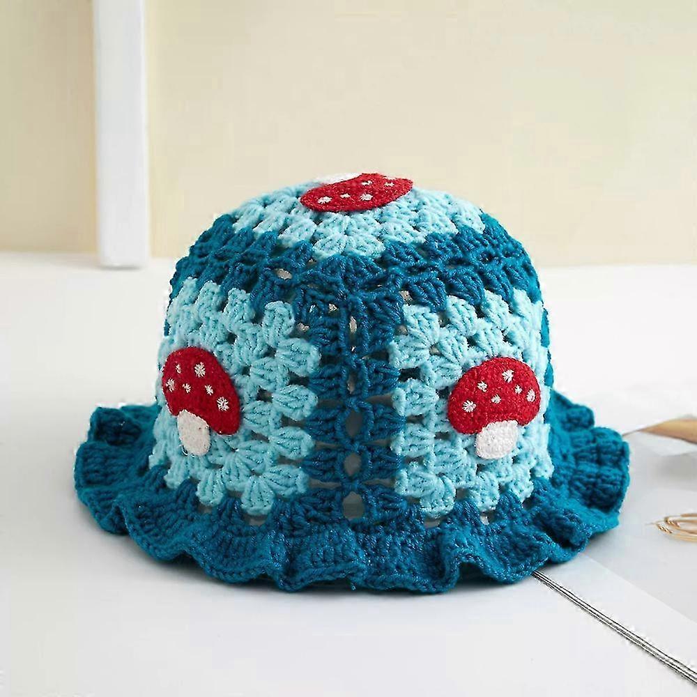 Cute Pink Crochet Strawberry Bucket Hat for Women, Ruffled Knitted Summer Sun Hat